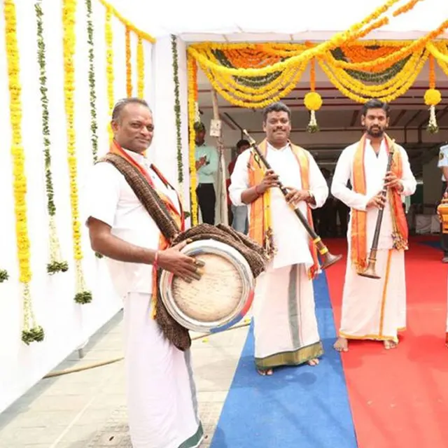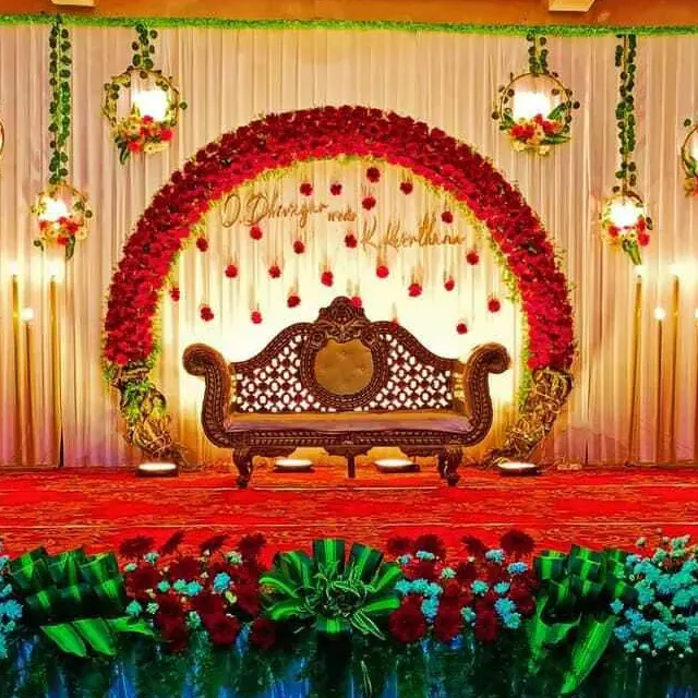 Our event solutions also encompass pandhal setups, serial lighting, DJ & chendamelam, welcome girls, return gifts, mehndi, prohith, garlands, and welcome dances. With our comprehensive event management, we promise that your special moments are memorable, elegant, and thoughtfully organized.
